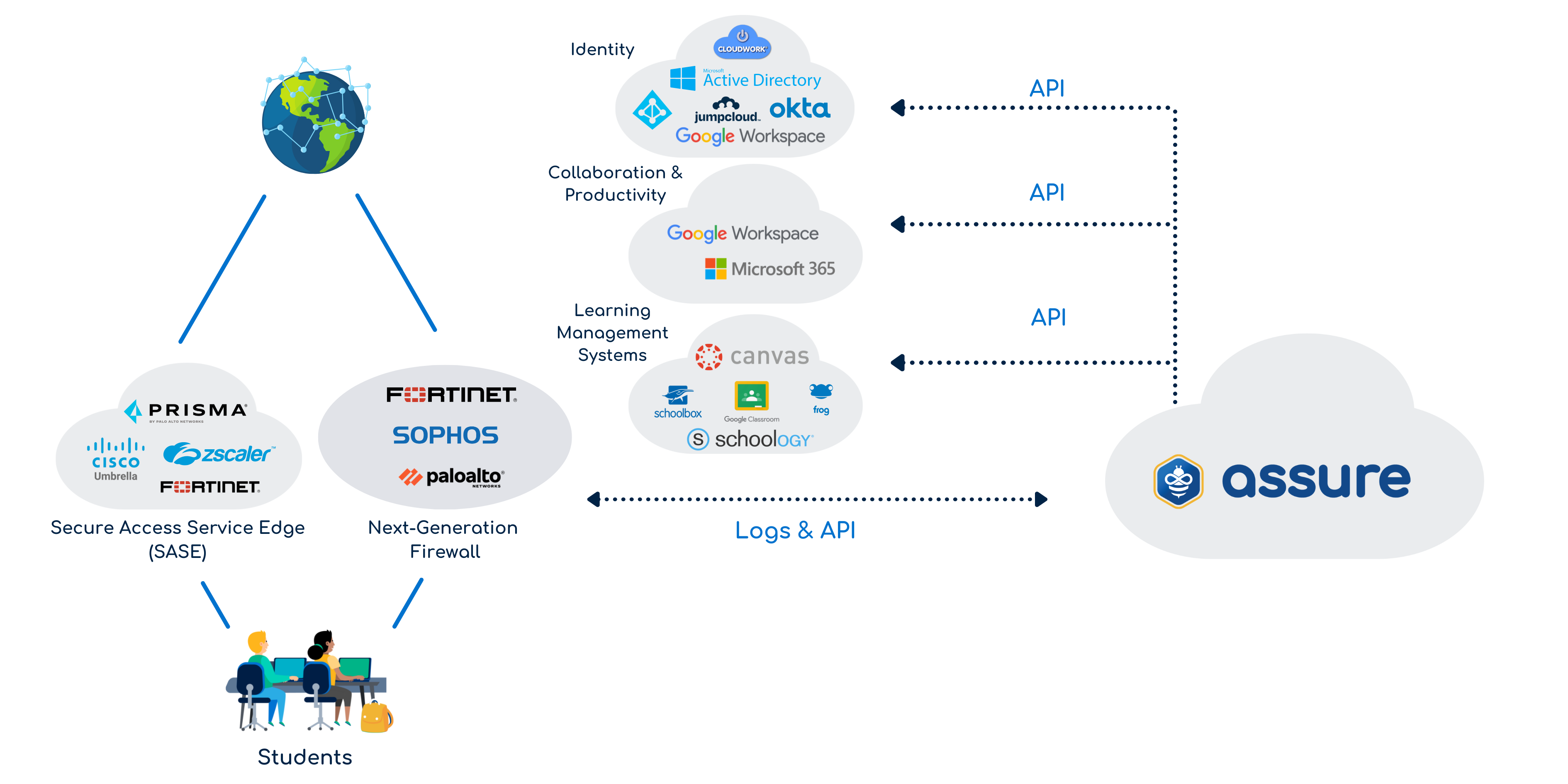 With a complete cloud-based SaaS solution, Assure leverages your existing technologies to provide automated data capture, alerting and self-serve reporting on student digital activities.
