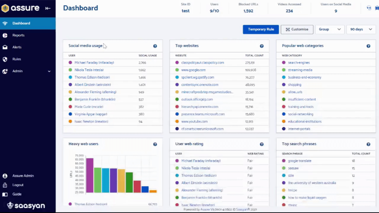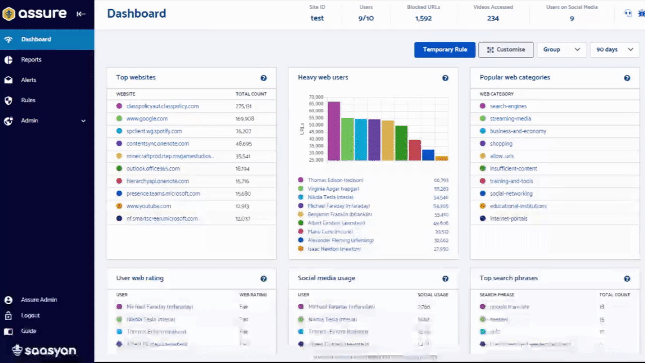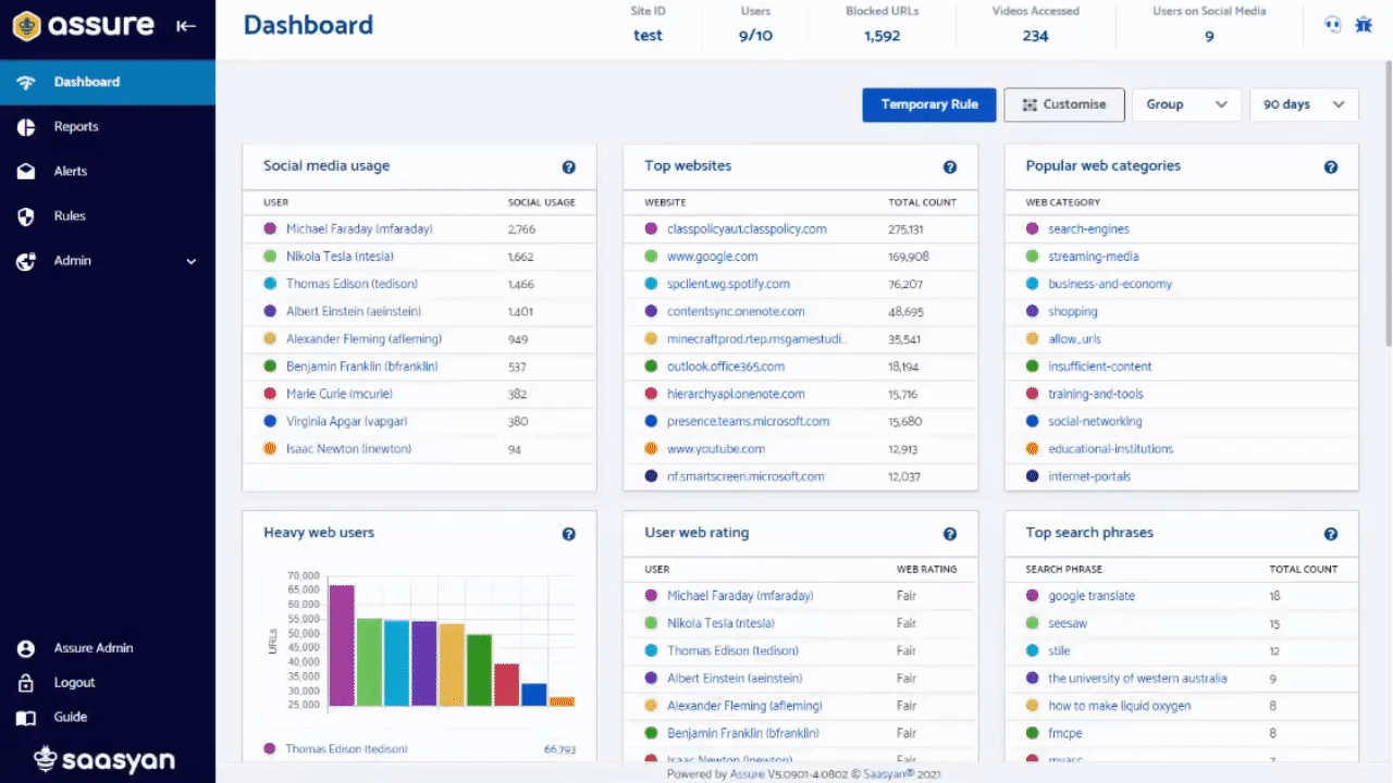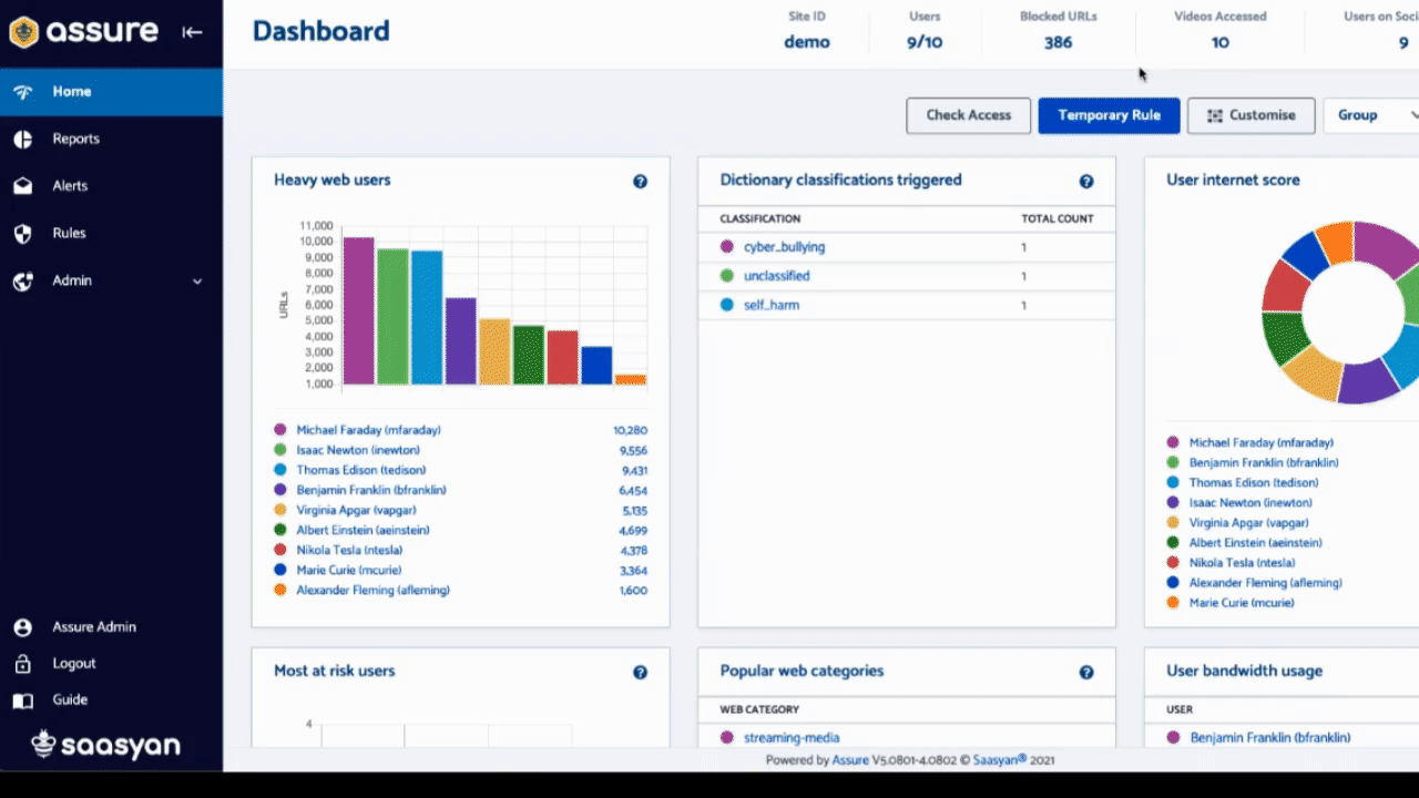 Assure is Saasyan's flagship AI-Powered Online Student Safety solution, enabling schools with flexible cybersecurity controls for k-12 classrooms,